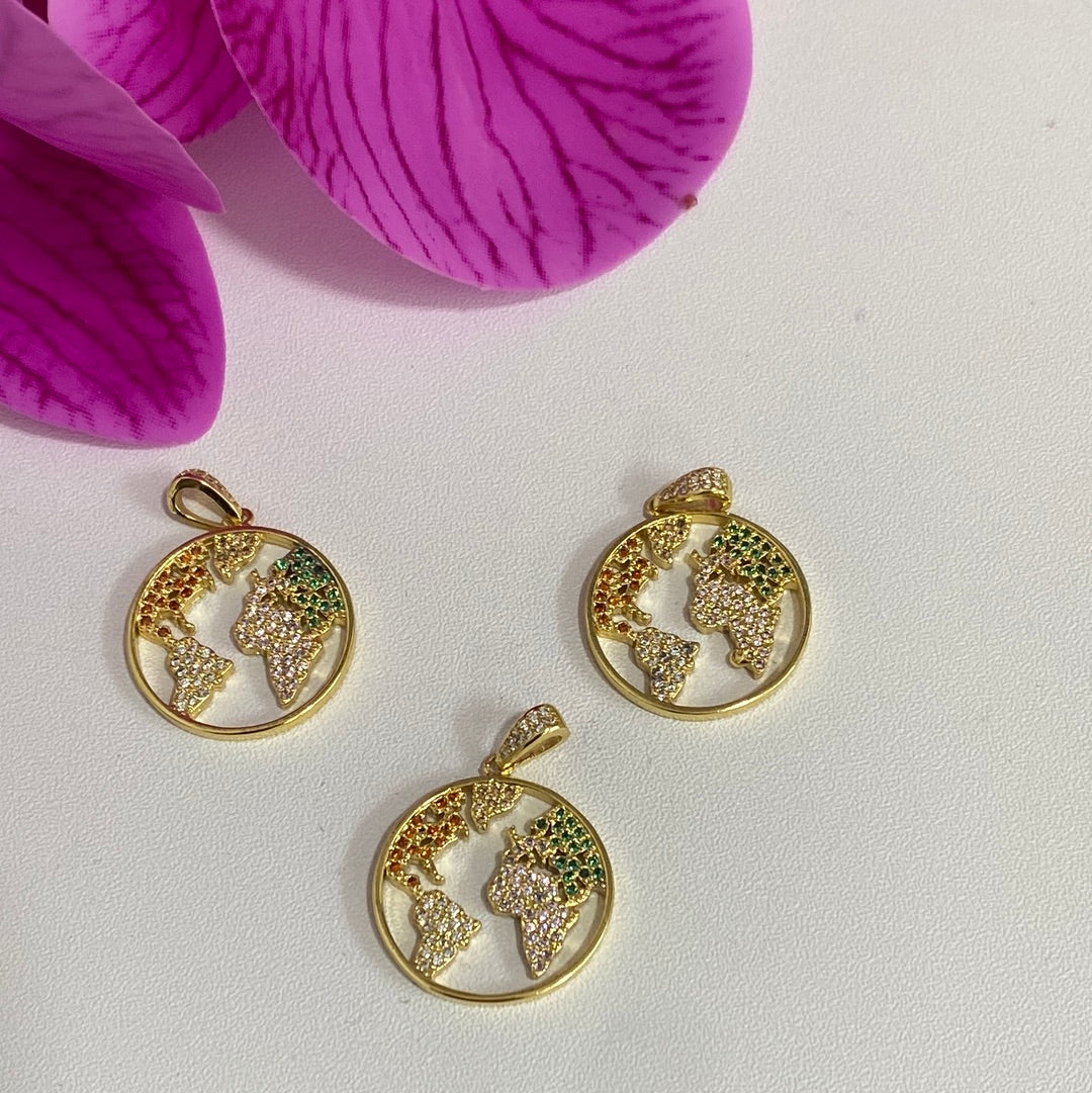 Chapa mapa del mundo con zirconia colores