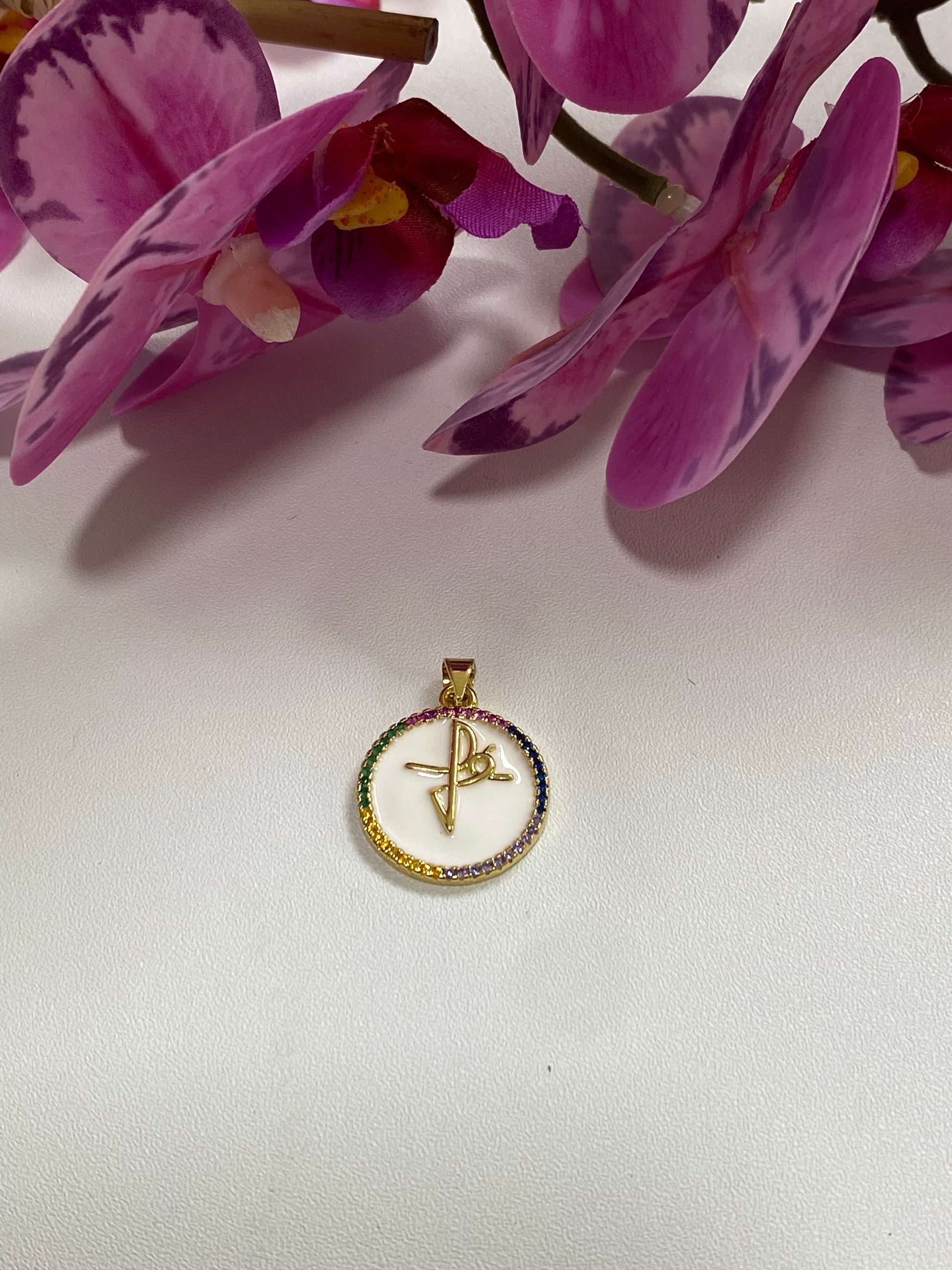 material enchape 18K, esmalte y zirconias de colores.